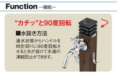 (耐荷重49N{5.0kgf}以下) 〇水抜きハンドルを90℃回転操作するだけで凍結防止ができます。