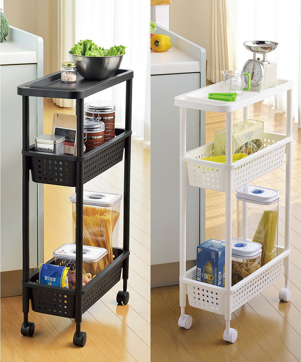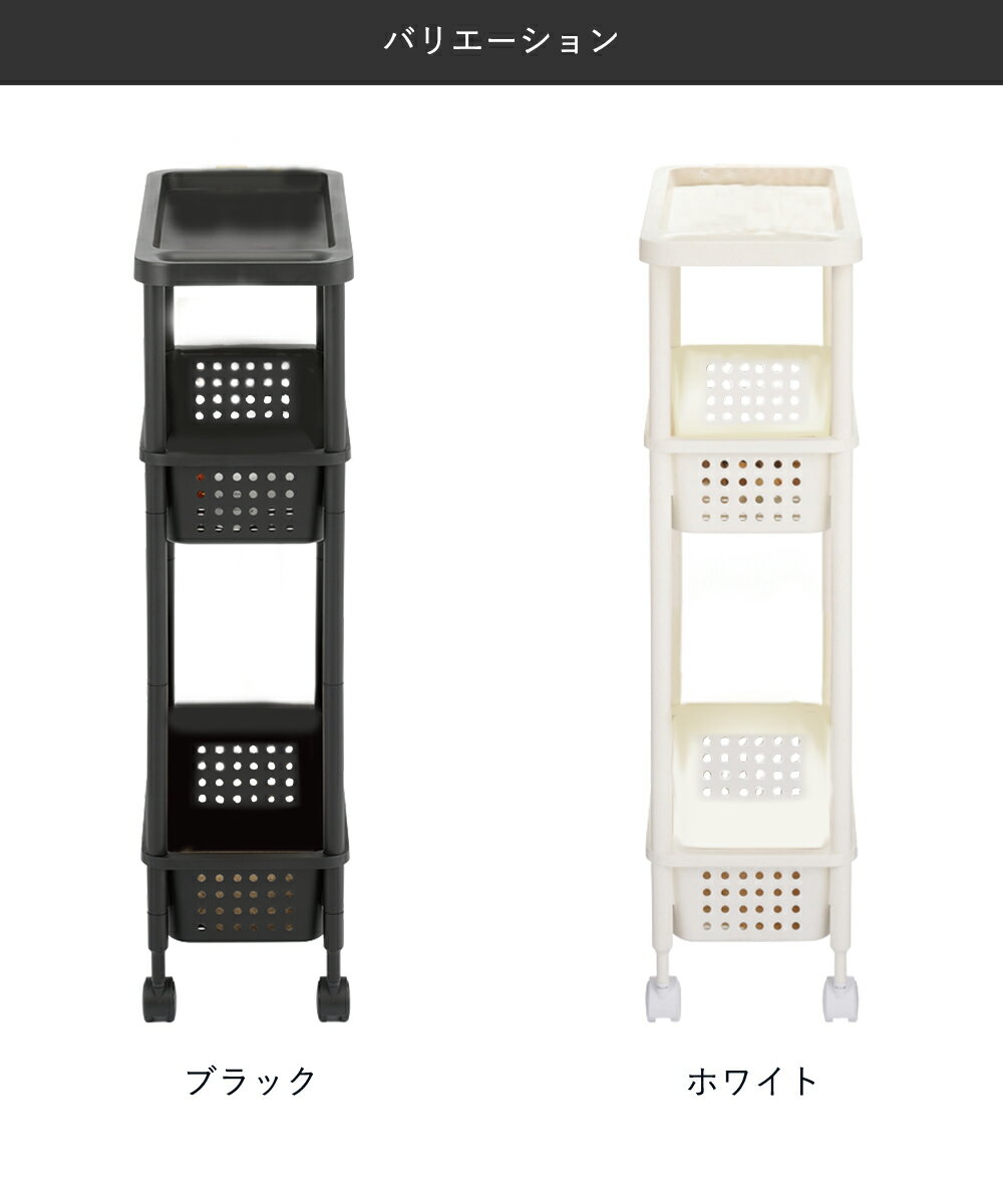 スリムワゴン 3段 パール金属 スペーシア | 隙間収納 すきま収納 キャスター付き 幅 隙間 すきま すき間 隙間ワゴン すき間ワゴン ワゴン スリム スリム収納 キッチンワゴン ラック キャスター キッチン ブラック ホワイト キッチン収納 サニタリー 洗面所 ランドリー 天板