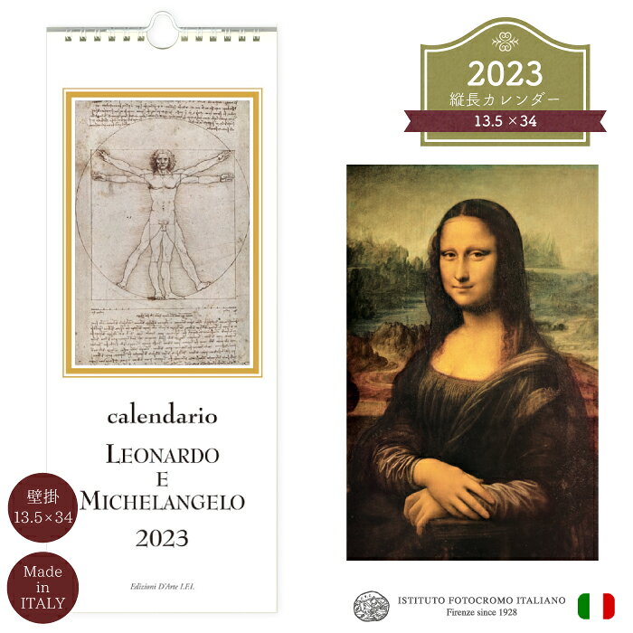 2023年 カレンダー LEONARDO E MICHELANGELO CV2305 イタリア製 直輸入 壁掛け スリム アート ヴィンテージ インテリア ISTITUTO FOTOCROMO ITALIANO / I.F.I 2023年度版 カレンダー 13.5×34cm 縦長 おしゃれ 西洋絵画 宗教画 ダヴィンチ ミケランジェロ モナリザ