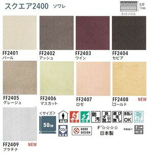 ピタッと吸着 東リ スクエア2400 ソワレ タイルカーペット【防汚・防ダニ・洗える】【日本製】 サイズ500mm×500mm 10枚セット 色番 FF2402