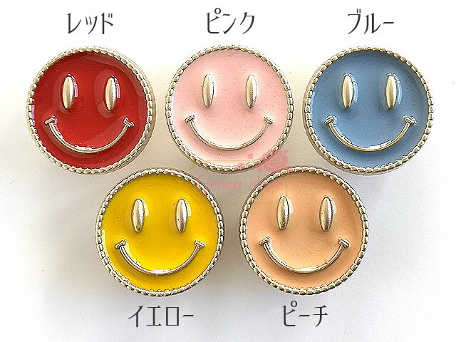 スマイル ボタンパーツ 約28mm 全5色 10個 ym1-2054